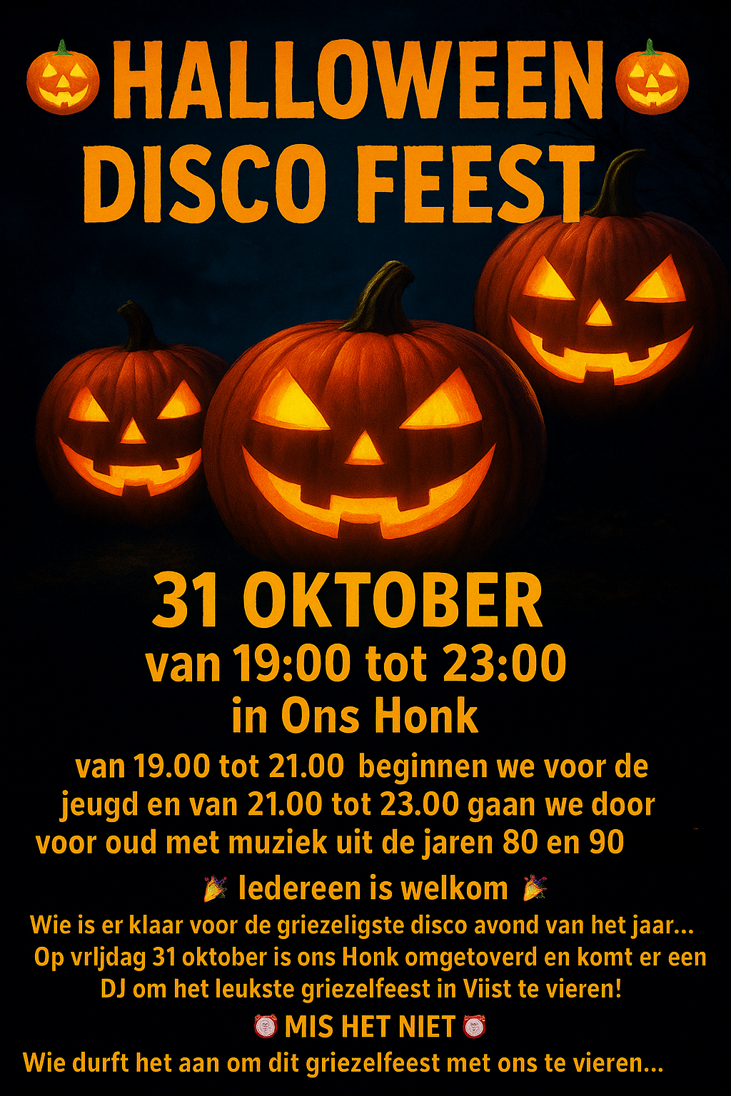 Op vrijdag 31 oktober toveren we de zaal om tot een griezelig gezellige Halloween Disco voor jong én oud!